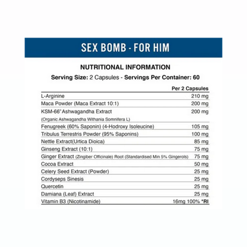 Encapsulated in a plant-based, Halal-certified veggie shell, this formula is ideal for men who value performance, quality, and dietary integrity. Manufactured in GMP-certified facilities and athlete-tested, Sex Bomb delivers trusted results you can rely on.
